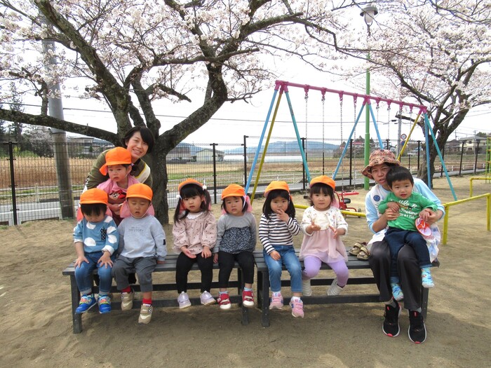 みんなでお花見会をしました。めろん組さんにお手伝いしてもらい、こいのぼりを準備しました。こいのぼりが大空に舞い上がると歓声が起こっていました。その後、りんご組さん以上の大きいクラスのお友達はお団子を食べました。みんなおいしそうに食べていましたよ。 | ||