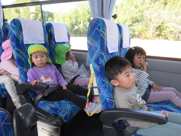 以上児3クラスのお友達がバスに乗って、平筒沼まで遠足に行ってきました。バスの中では、お歌を歌い、手遊びをしながらワクワクの様子の子ども達でした。平筒沼でもローラー滑り台や遊具で元気いっぱい遊びました。どんぐりを見つけてお土産にするお友達もいましたよ。帰りのバスでは、ウトウトするお友達もいましたが、園に戻ってからも遠足の話で盛り上がっていた子ども達でした。 | ||