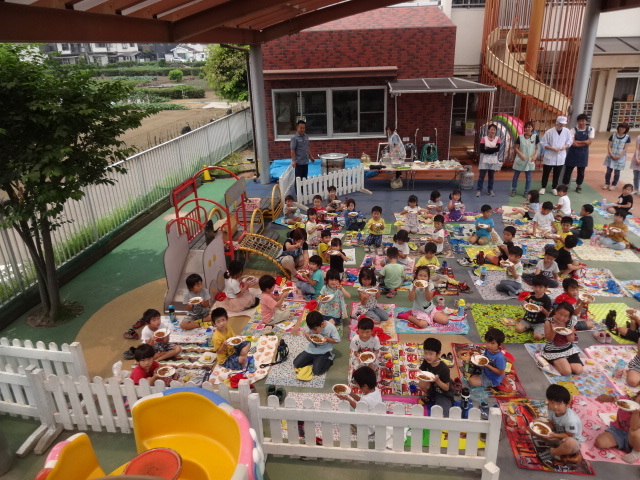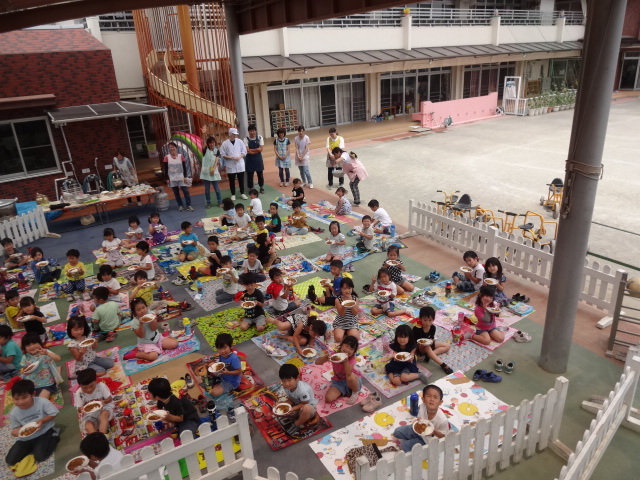 らいおん組、くま組はニコニコひろばで食べました。