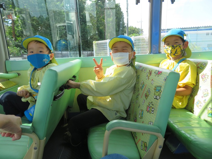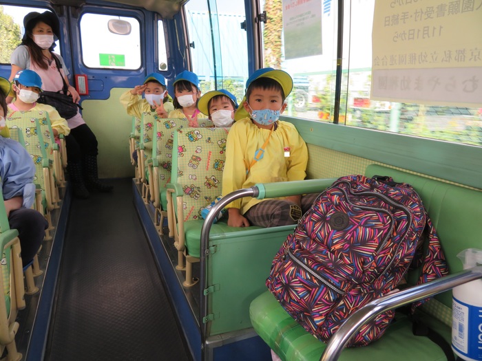理事長先生の畑にらいおん組さんがお芋ほりに行ってきました。手の消毒をしてバスに乗り込んで出発!!普段は1台で行くのですが新型コロナウイルス感染症予防のためバス2台に分かれマスクを着用で出発しました。雨が上がり土の状態もバッチリ!土を掘ってお芋探し。今年は豊作だったので土の中から出てきたお芋を見つけ「あったよー!」と大盛り上がりでした。他クラスのお土産のお芋も掘ってくれたらいおん組の子どもたちでした。何より幼稚園バスに乗ったことが嬉しかったようです! | ||
