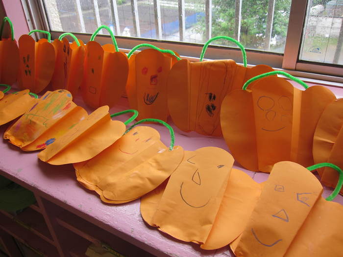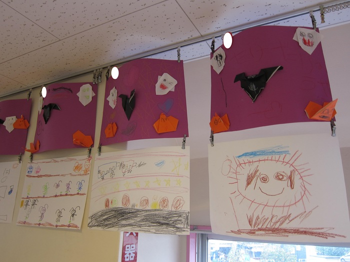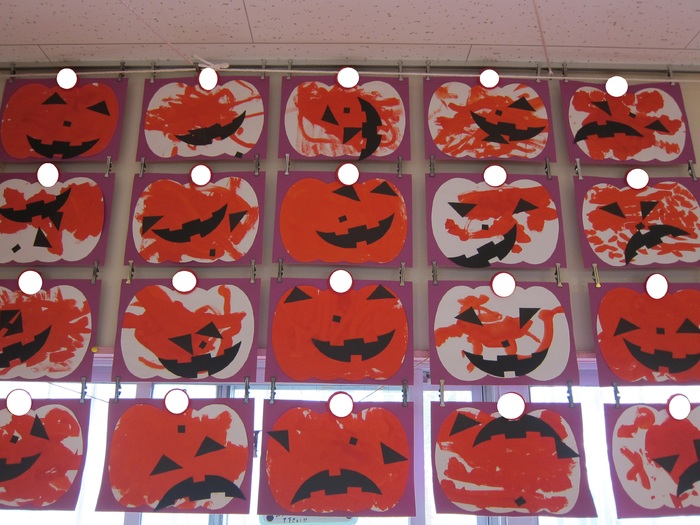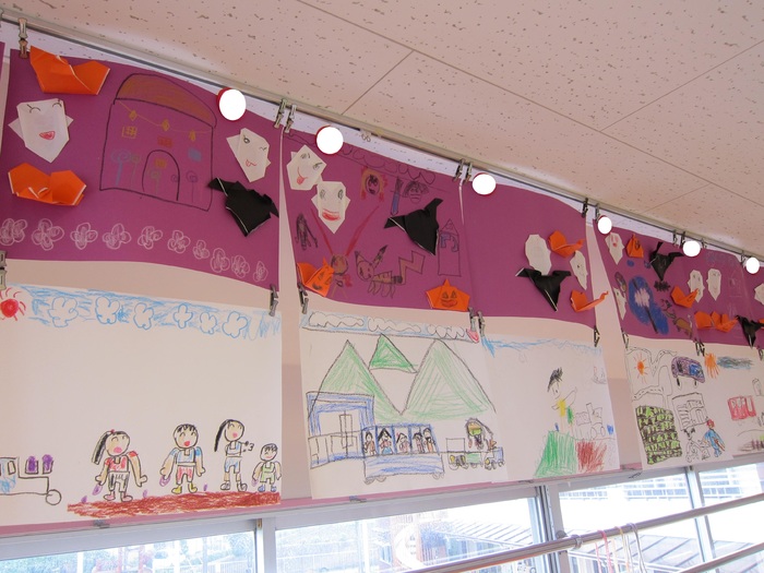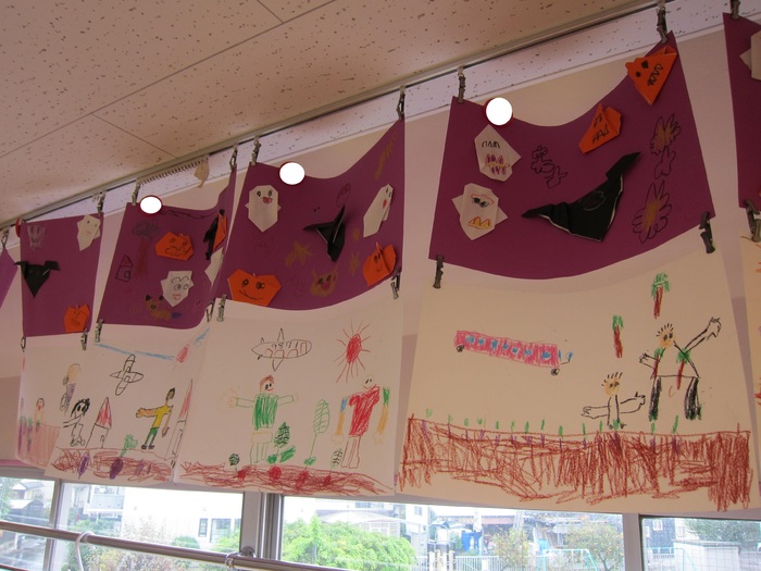 各クラスの制作の紹介です。 ハロウィンにちなんだものや体験したことを絵に描きました。 | ||
