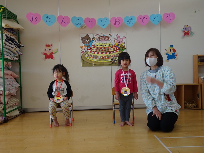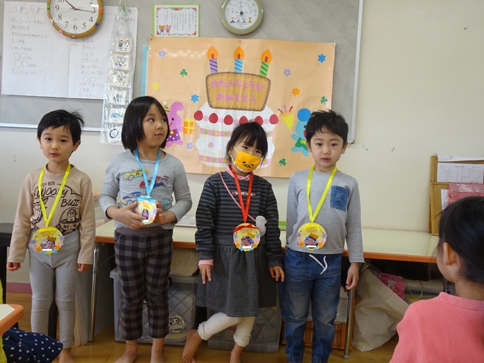 12月の誕生会がありました。今月も各クラスで誕生者のお友だちをお祝いしました。