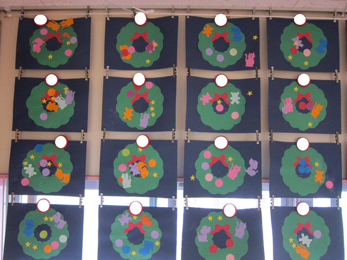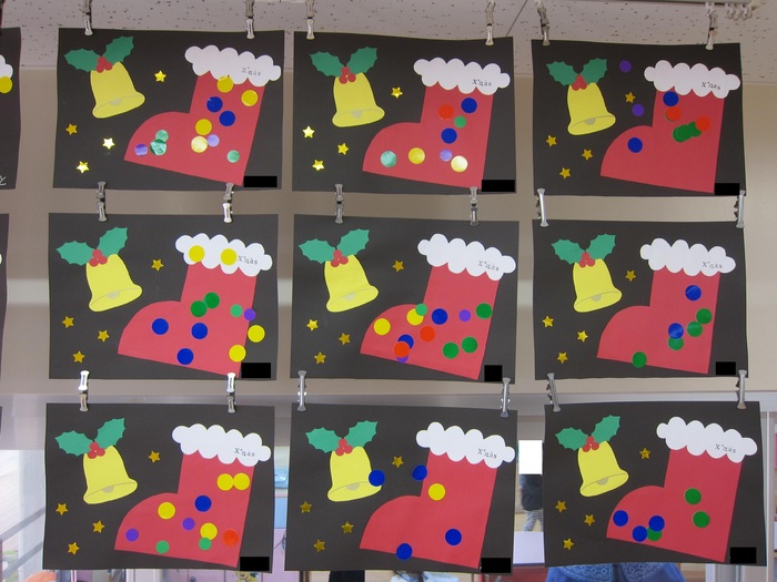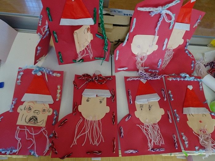 くま組 サンタさんを作成し周りは毛糸で編みこみました。