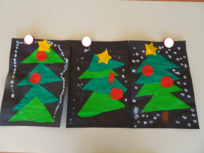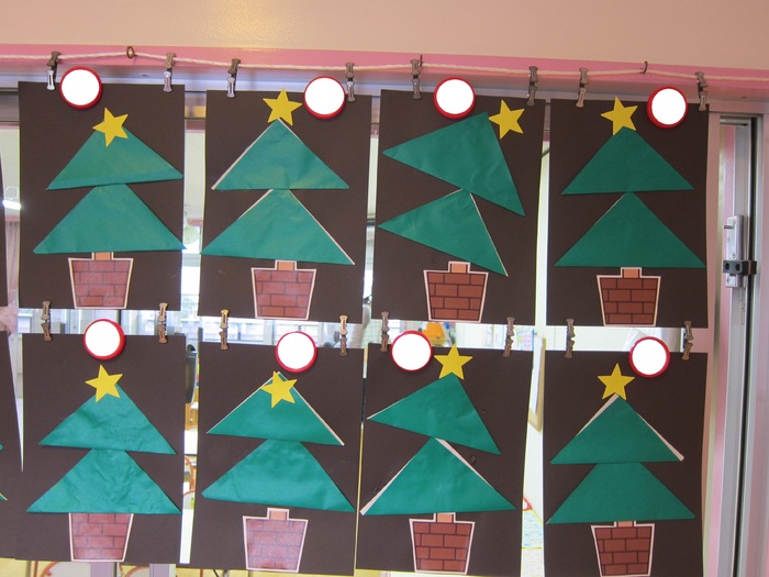 うさぎ組 折り紙を折ってモミの木を完成させました☆
