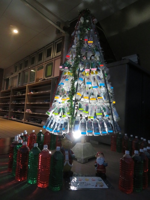 全員がペットボトルで作成し大きな『エコツリー』の完成です!!夕方ライトアップしています!