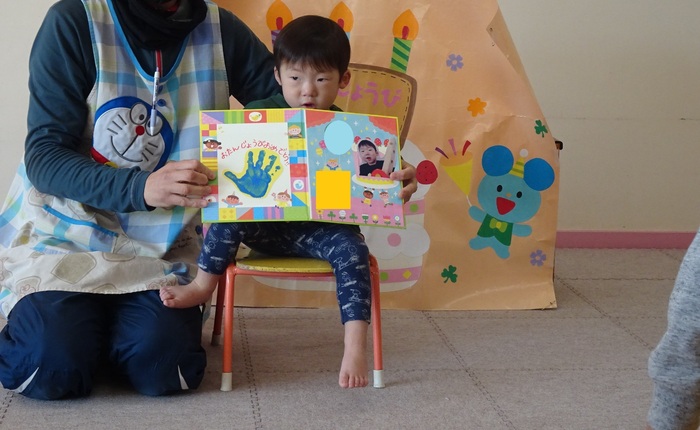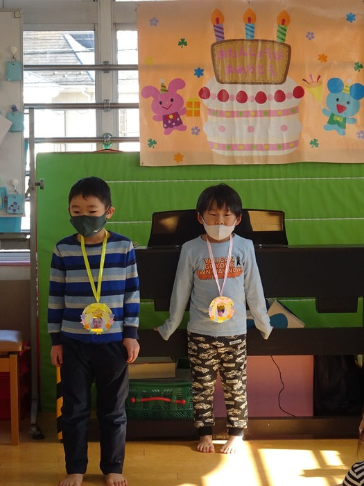 1月の誕生会も各お部屋で誕生者のお友だちをお祝いしました。「おめでとう!!」とお祝いの言葉のシャワーをみんなから掛けてもらいニコニコ笑顔のお花がたくさん咲きました♪ひとつ大きくなったお友だち!おめでとう!!