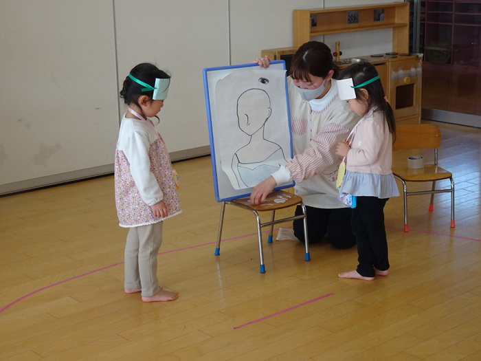 目隠しをして「福笑い」に挑戦!!