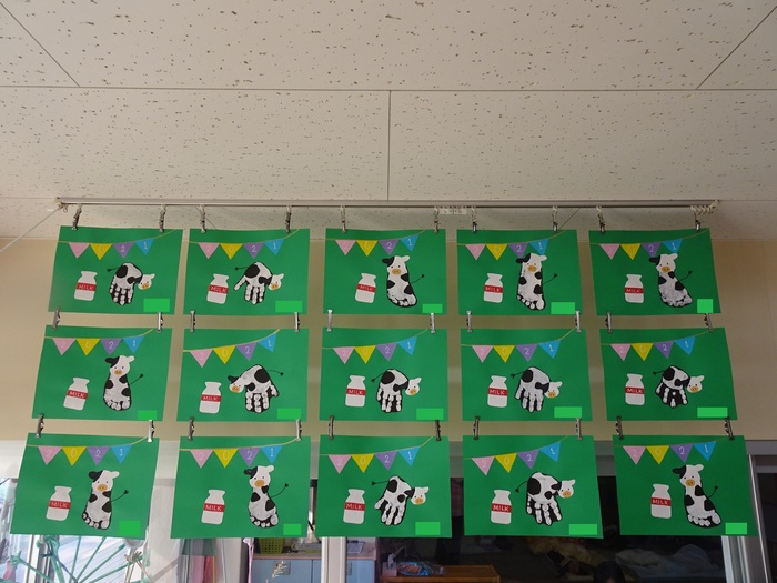 うさぎ組 牛の顔や目を自分で塗ったり貼ったりし、鼻輪も自分で付けました。個性豊かな牛の完成です。