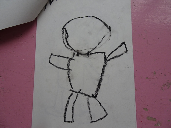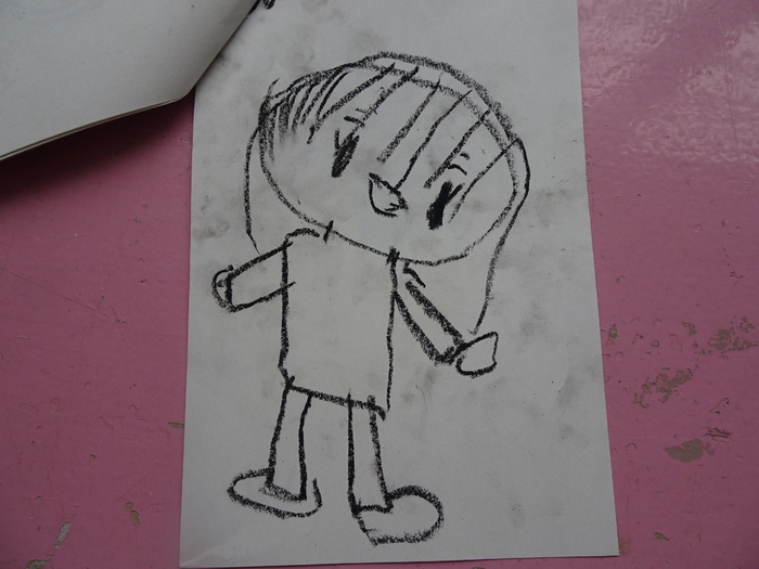 4歳児クラス:「人を書いてみよう!!」①~④まで体を意識して書くことでだんだん上達していきました。 | ||