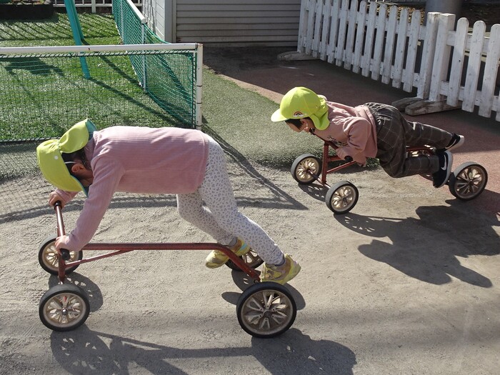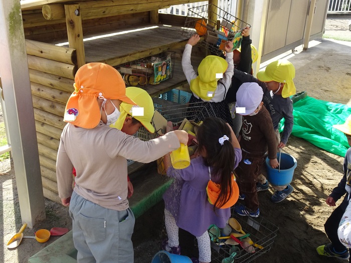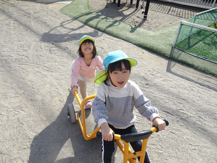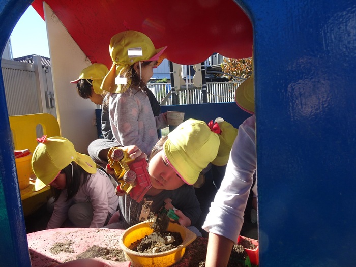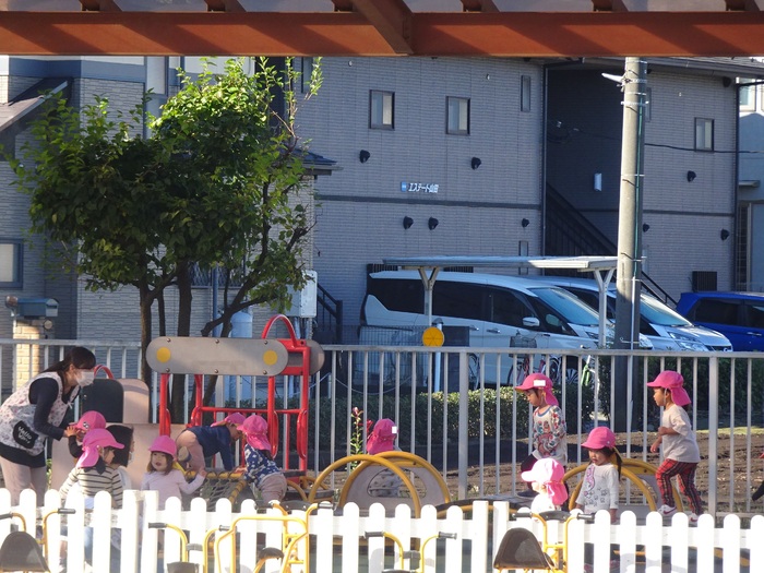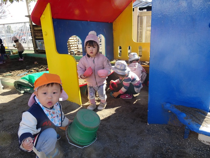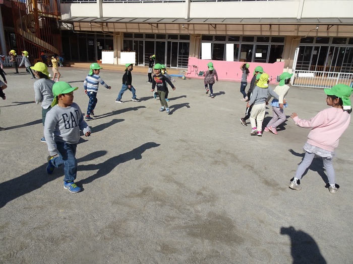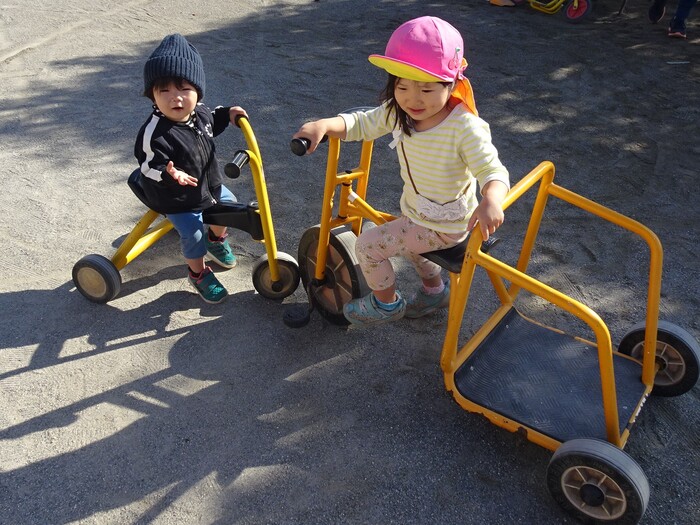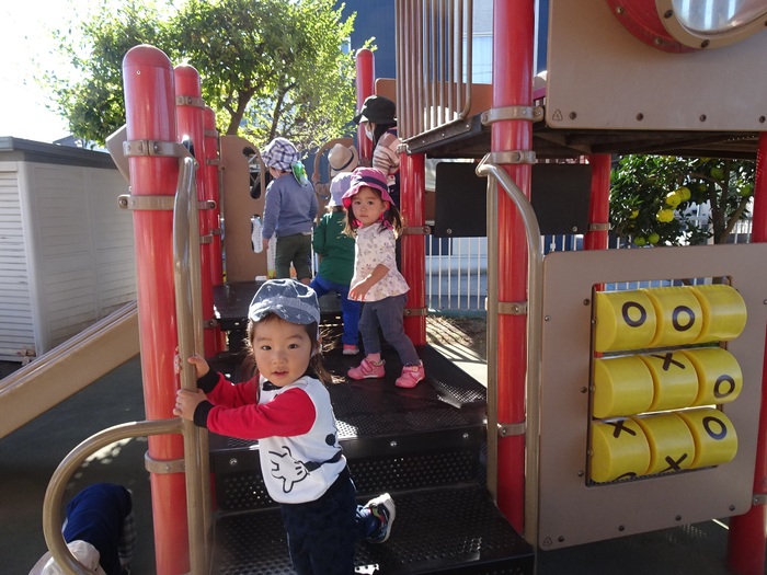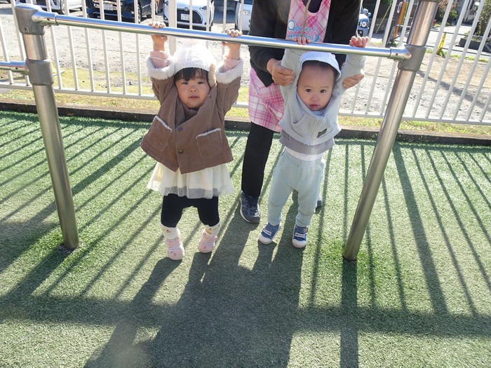 11月は青空が広がり外でたくさん遊べました。朝から外に出たり、午前中外に出られなかった日は、おやつ後に出て遊んだりもしました。新型コロナウイルス感染予防でお散歩も控えていましたが、近隣散歩から少しずつ歩く練習のお散歩に出始めています。 | ||