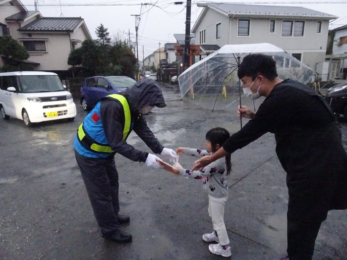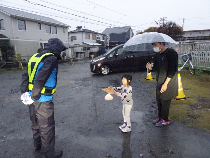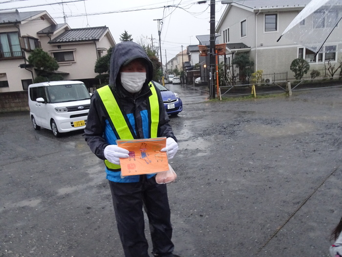 いつも門の所で雨の日も風の日も、暑い日も寒い日も、子どもたちを見守ってくれているシルバーさんに感謝の気持ちを伝えてお礼のプレゼントをしました。 | ||