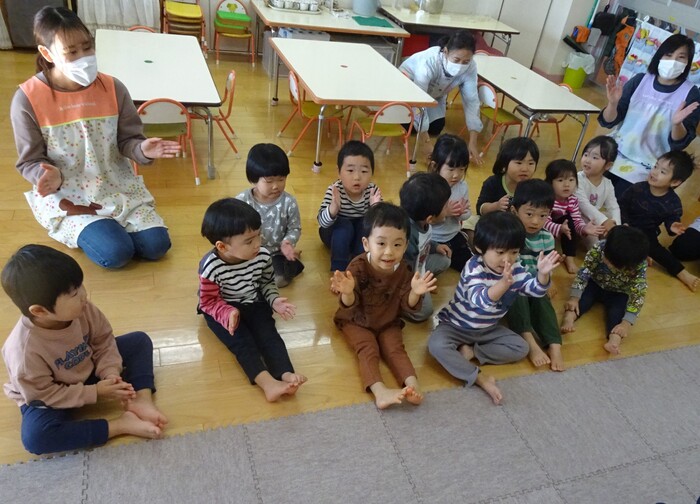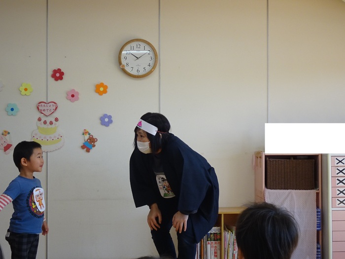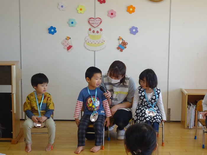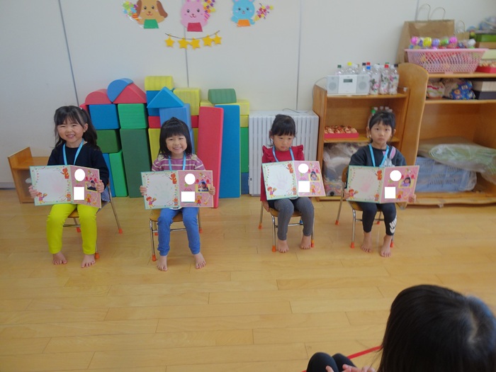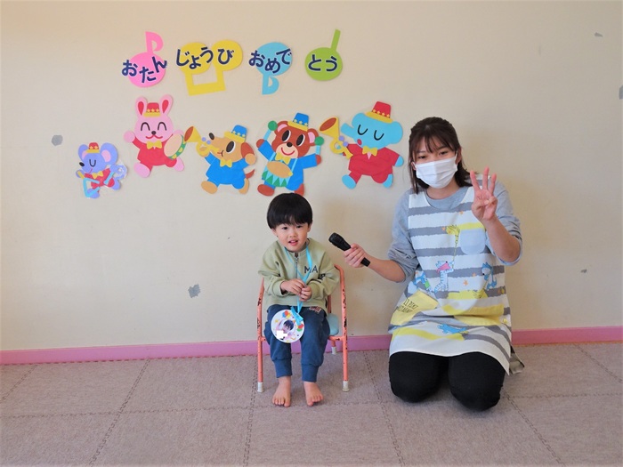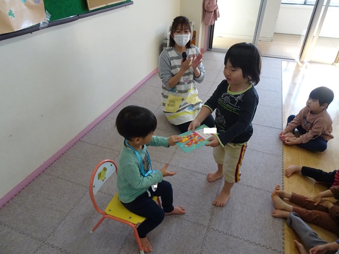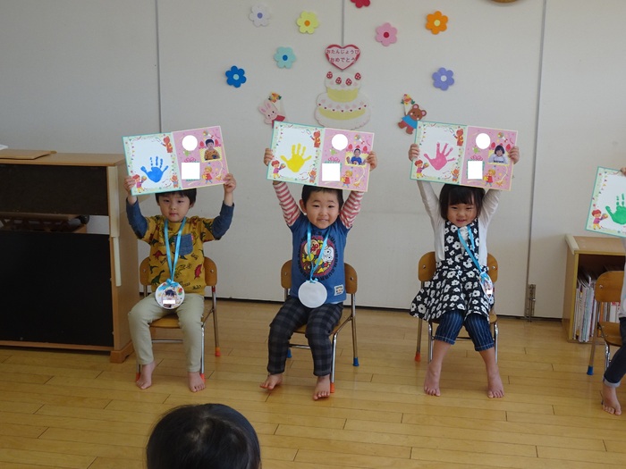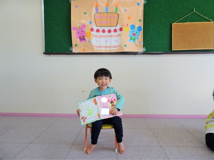 0・1歳児のお誕生者のお友だちは、お休みでした。来月参加します。 | ||