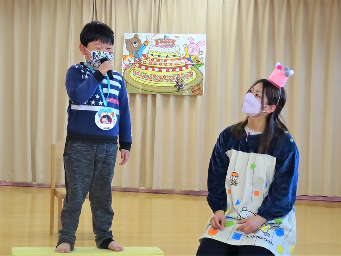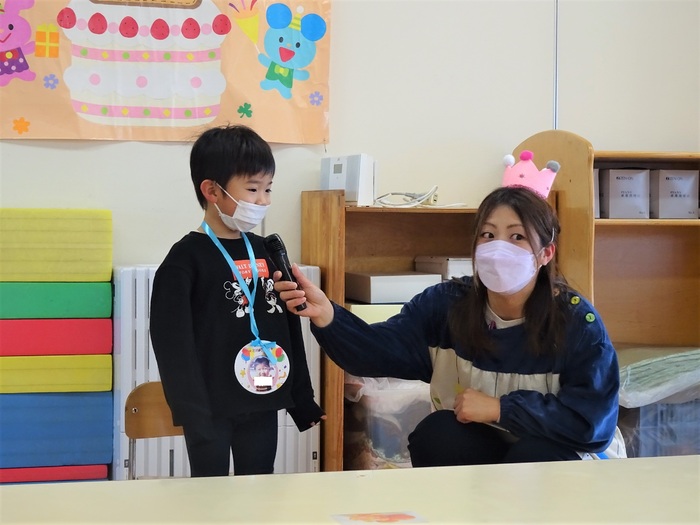 年長さんは、自分でマイクを持って自己紹介をします。照れながらも発表出来ました。