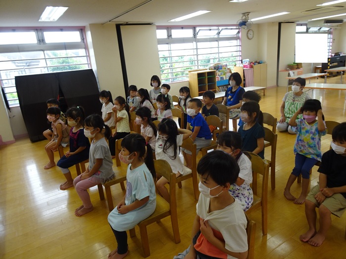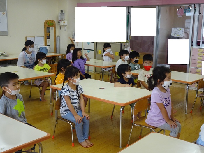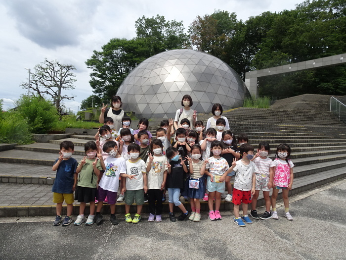 7月5日(火) らいおん組が東大和市立郷土博物館にプラネタリウムを見に行きました。 行く前から宇宙や星座などの話を先生がしてくれていたので興味津々でプラネタリウムを見たり話を聞いていましたよ(^_-)-☆ | ||