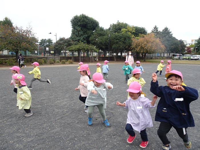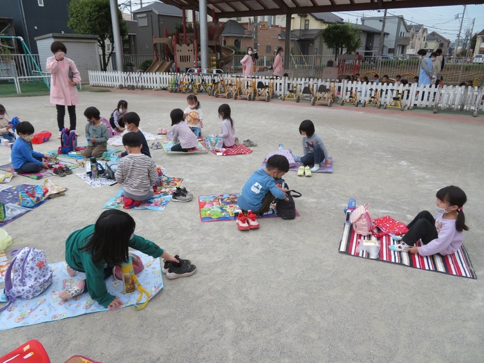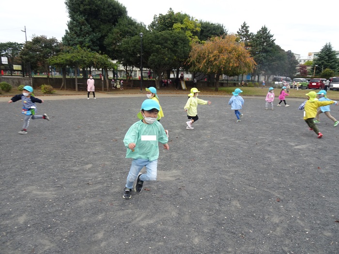 感染症予防をしながら幼児クラスは、近くの公園へバスに乗って行ってきました。