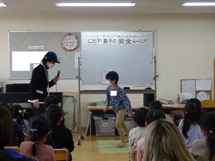 5歳児クラス対象に親子で小学校に向けて自分の事を危険から守るお話を聞きました。 | ||