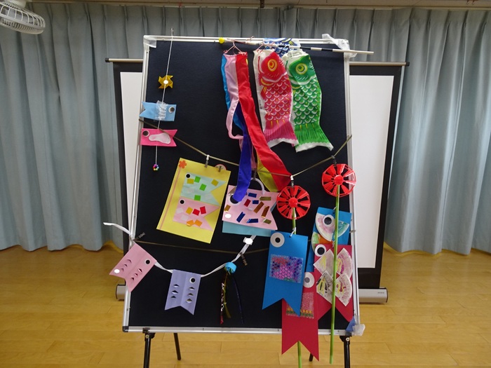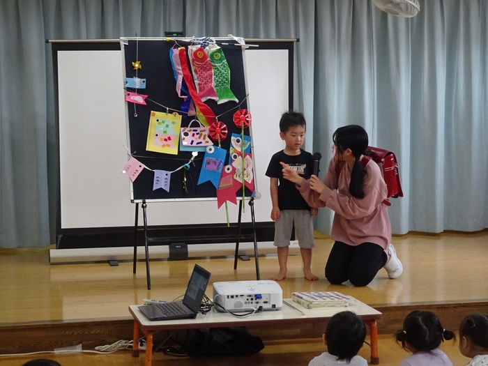子どもの日のお祝いの会がありました。 各クラスのこいのぼり製作を紹介した後、子どもの日に関するクイズをしました。 先生たちの子どもの時の写真を見て誰なのかを当てるクイズもありました! みんな健やかに大きくなぁれ♪ | ||