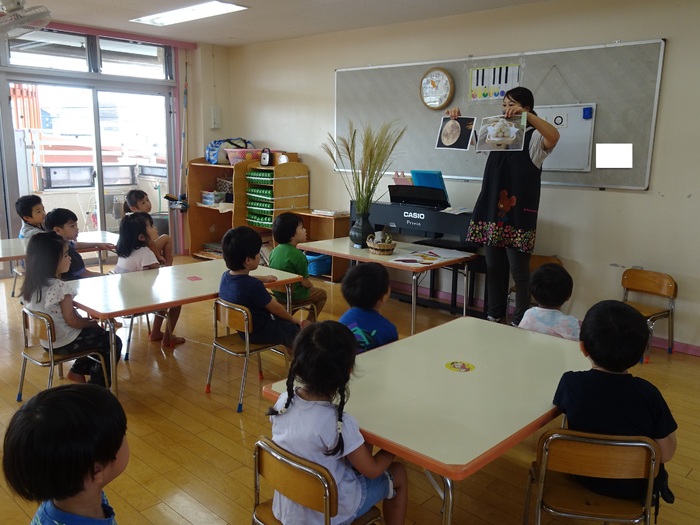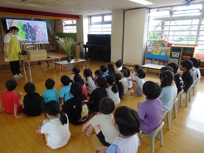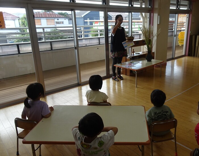 各クラスでお月見の会があり、由来についてお話を聞きました。 午後のおやつは、かわいいお月見ゼリーでした! きれいなお月様がみえますように・・・ | ||
