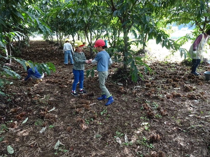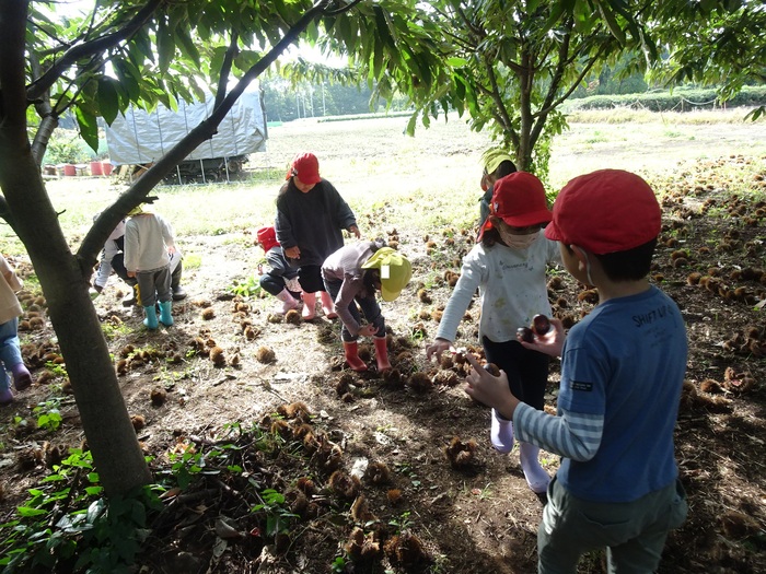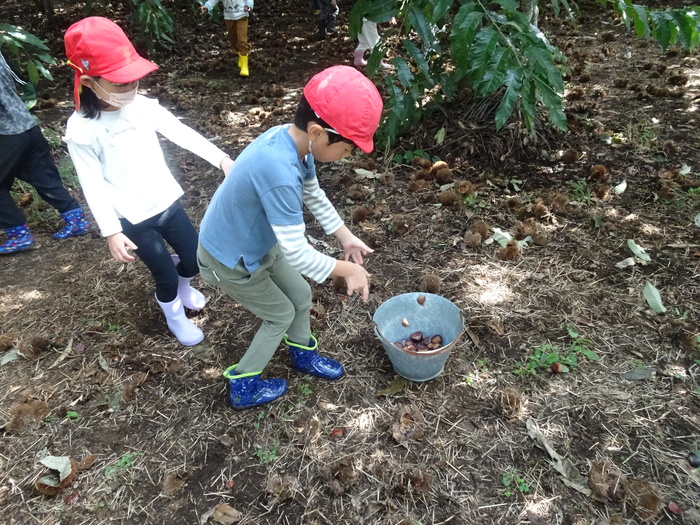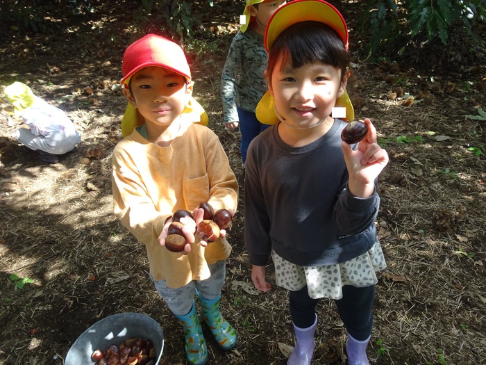 5歳児が栗拾いに行ってきました! 今年は豊作だったので、大きな栗をたくさん採ってきました🌰 | ||