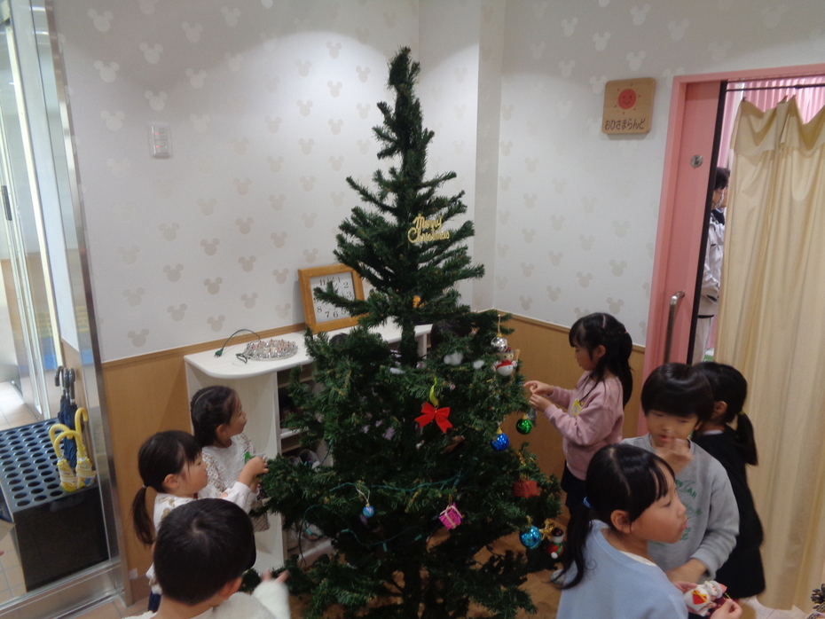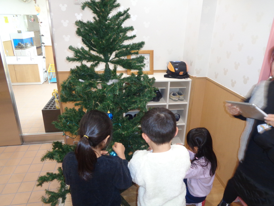 にじ組の子ども達を中心に、皆で飾りつけをしました。「キラキラになってきた~!」と子ども達はサンタさんが来てくれることを楽しみにしている様子でしたよ♪