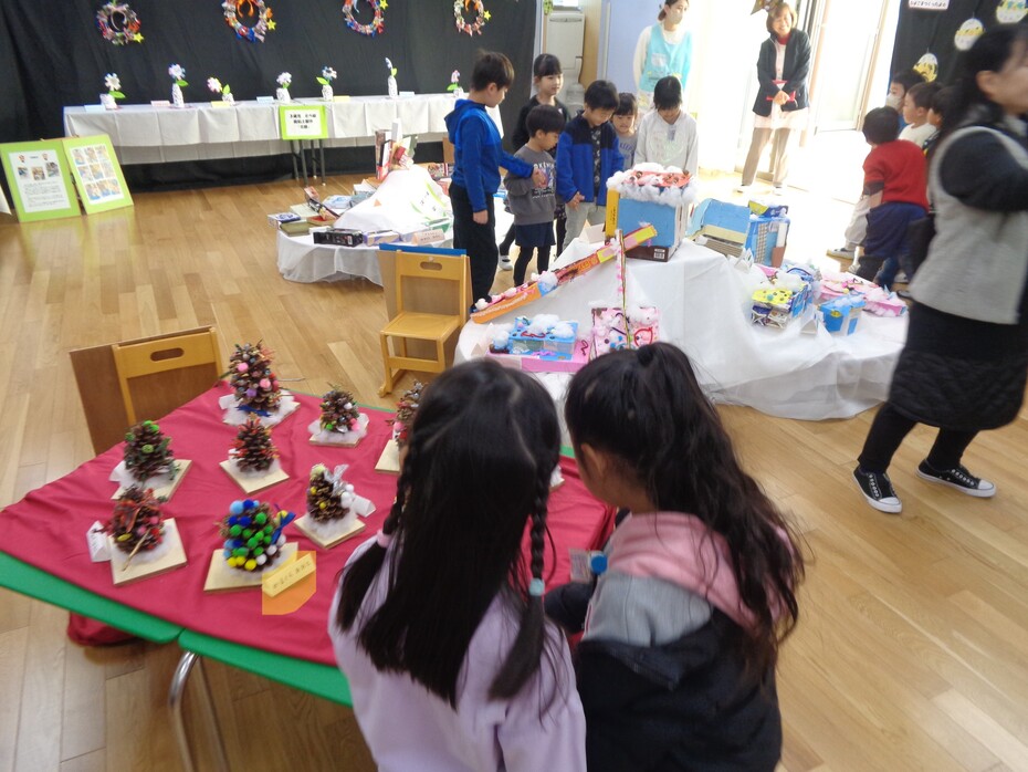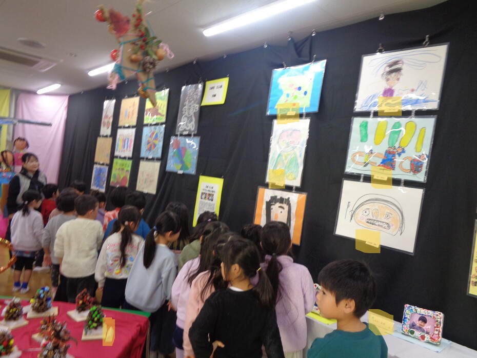 小学生の皆さんが、作品展をみにきてくれました。「わ~!すごいね。」とたくさん褒めてもらいました。子ども達は、嬉しそうに喜んで手をつないでもらい、作品を見てもらいました。授業の合間にきてくれた、小学生の皆さんも、ご協力いただいた小学校の皆さんもありがとうございました♪