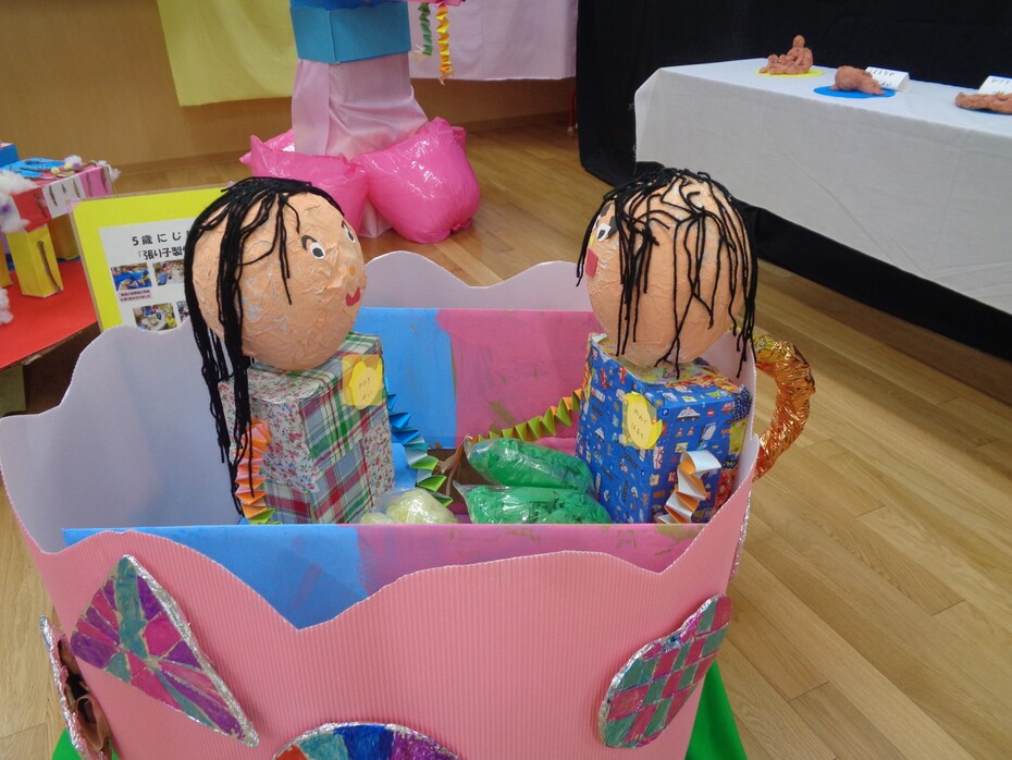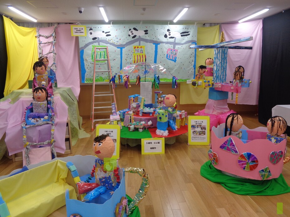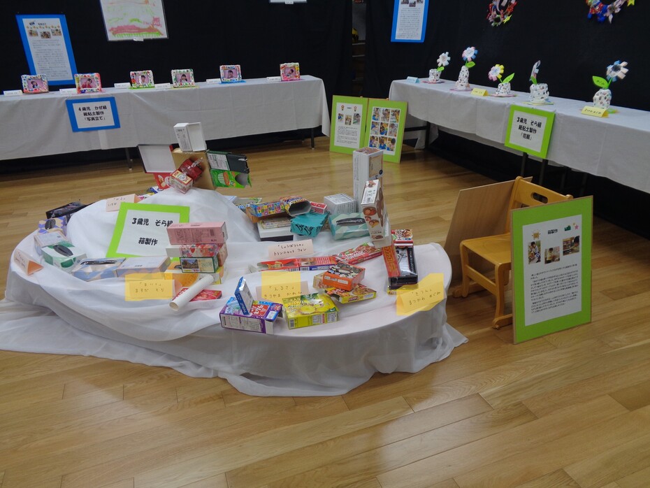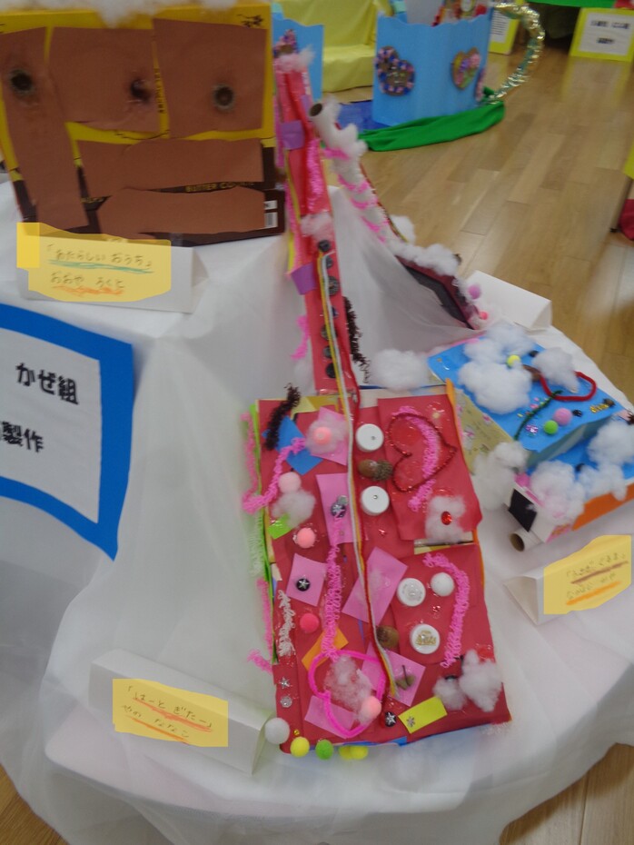 | 生駒山上遊園地を作った年長さん。初めての紙粘土に挑戦した、3歳さん。素敵なクリスマスリースを作ったかぜさん。とっても素敵な、作品展が仕上がりました。地域の方々、保護者の皆さん、沢山の方々に見ていただけて嬉しそうな子ども達(先生たちも)!ひよこ組さん、0,1,2歳の子ども達も作品を出してくれました。みんなで作り上げた、作品展になりました。ご協力ありがとうございました。 | ||