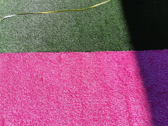 保育園の園庭工事、ピンクの人工芝が登場です!どんなになるかな♬