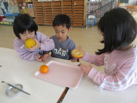 1月19日(月) 生き生き健康食育の日 (みかんであぶり出し) | ||