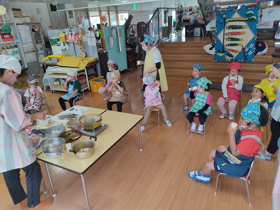 まずは カツオブシ イリコ こんぶ の様子や匂いを体験