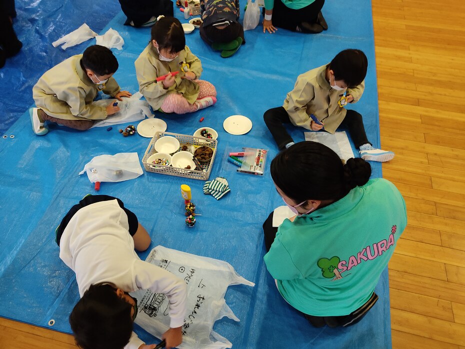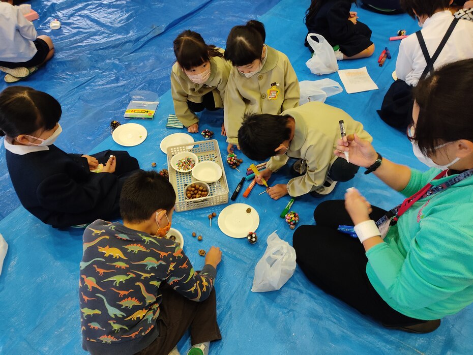 今日は、袋小学校で秋まつりに年長さんが参加します。