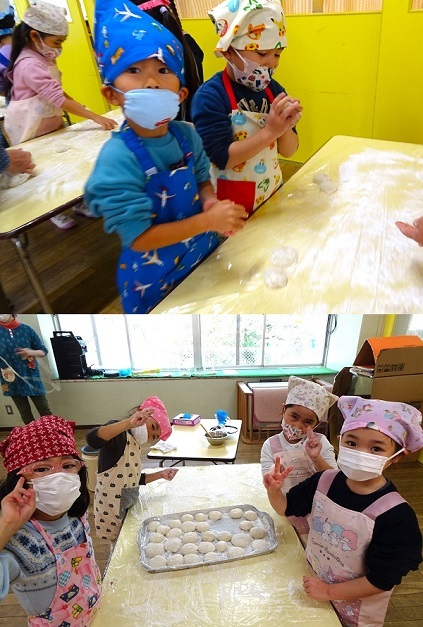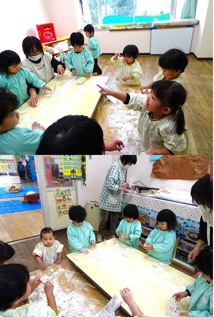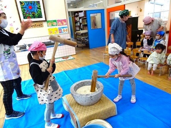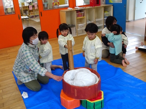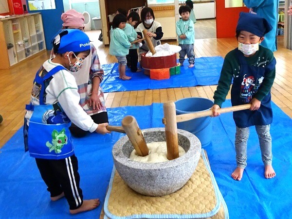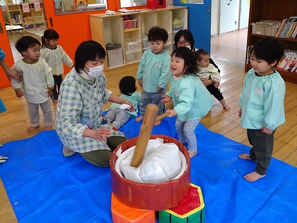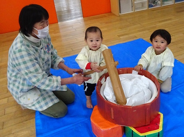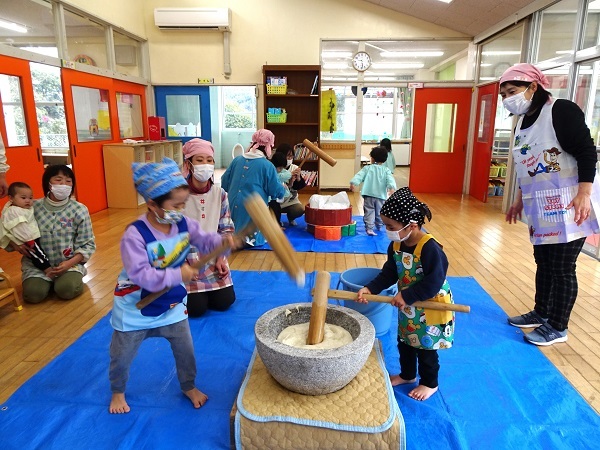 もちつき・もちまるめをしました。上のクラスになればなるほど上手にできます。楽しんで活動している子どもたちの様子をご覧ください。