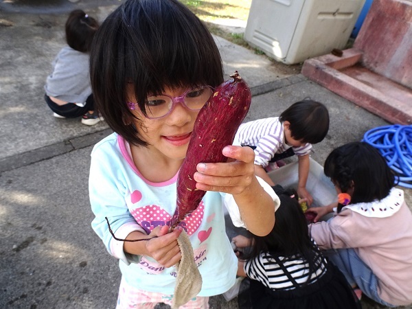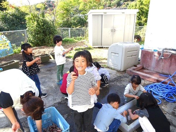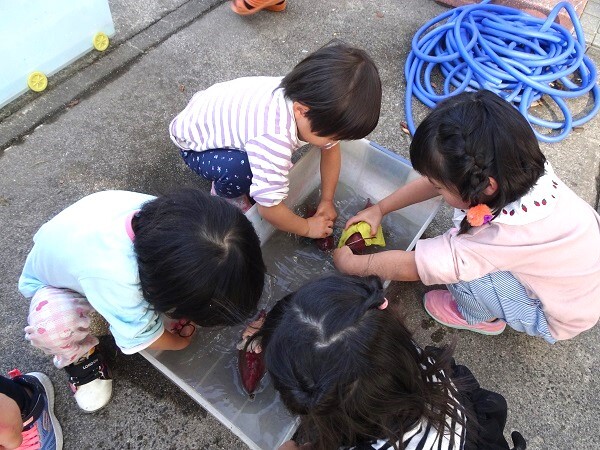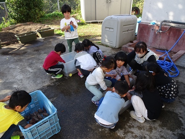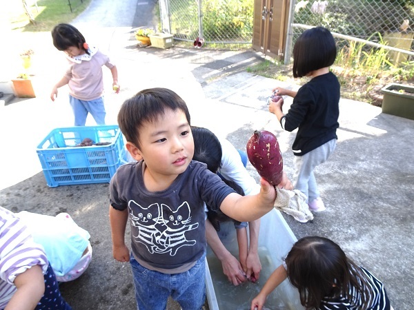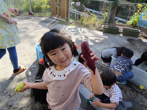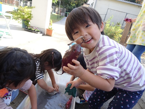11月4日(土)わくわくオータムデーがあります。その時の「焼いもコーナー」用のおいもを子どもたちが洗ってくれました。がんばって洗う子どもたちの様子をご覧ください。