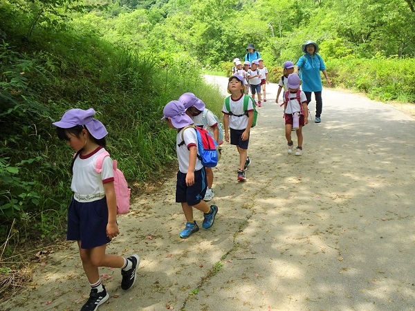 行くときは、元気いっぱいの子どもたち。帰りは遊び疲れて、歩くのも・・・・。子どもたちの様子をご覧ください。