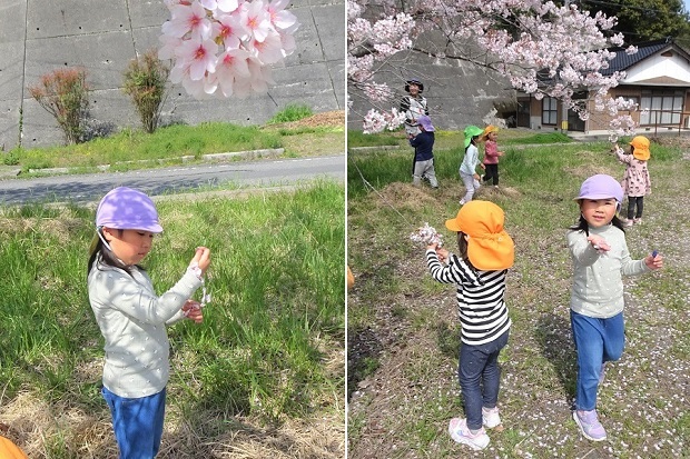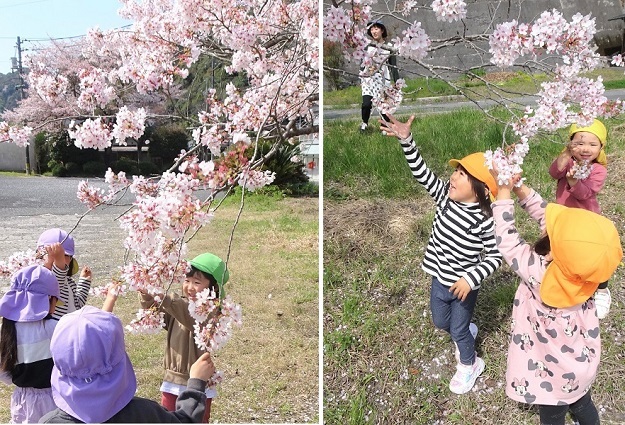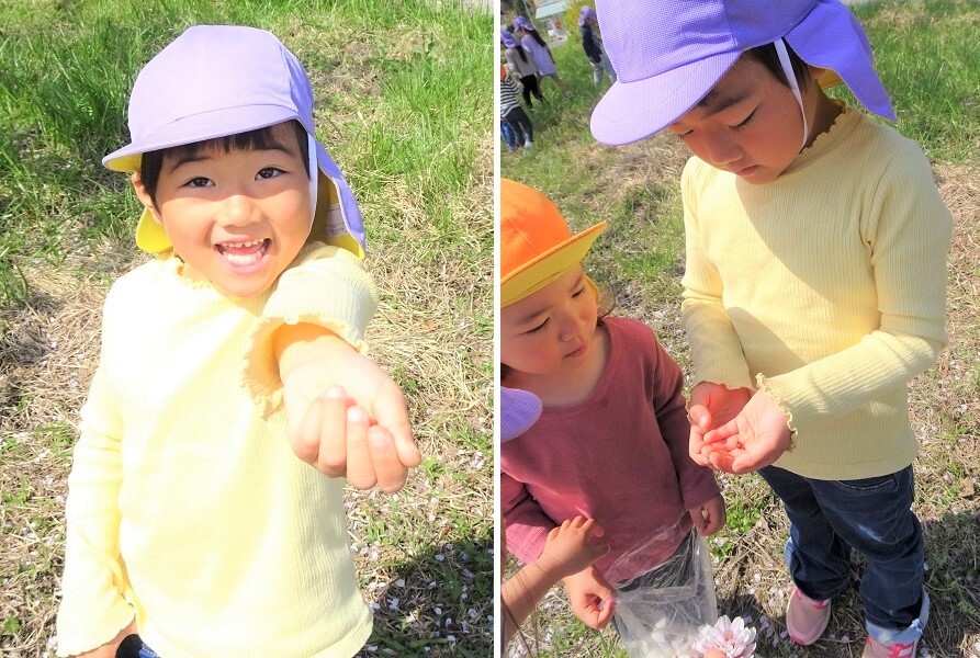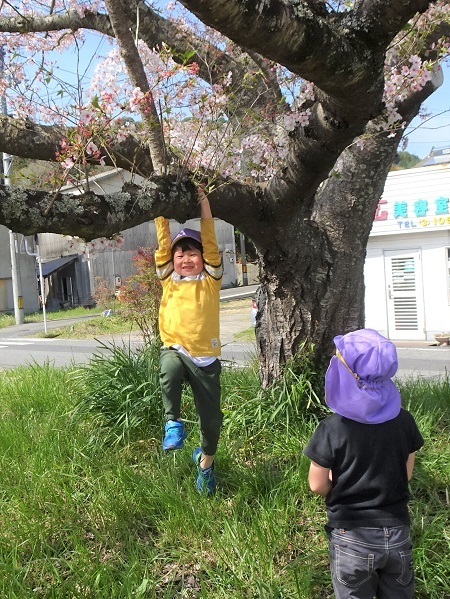 月・雪・星組の子どもたちが、駅前の桜の花見に行きました。今年は、桜にさわることができました。春の自然を五感で感じている子どもたちの様子をご覧ください。