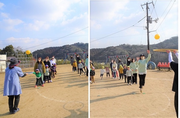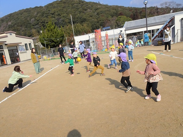 今日は、雪組の参観日です。園庭では、ガッツ体育教室の高木先生による「風の子タイム」が行なわれました。楽しく元気に活動する子どもたちや保護者の皆様の様子をご覧ください。