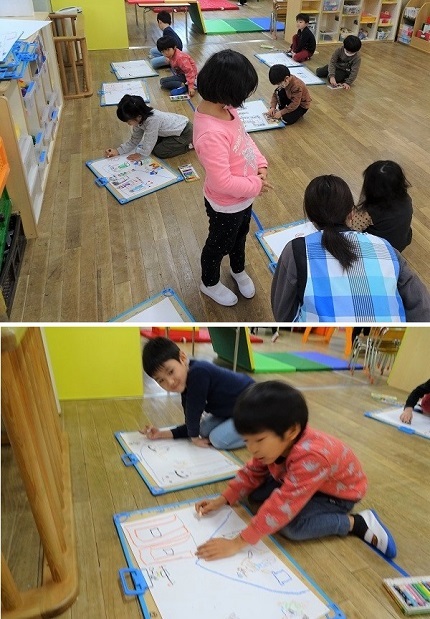 次の日、おもちつきの絵を描いています