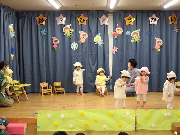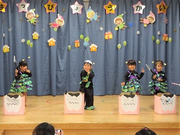恒例の「発表会」がにこにこルームで行われました。今年も素敵な衣装やかわいい衣装を着て、劇やダンスを発表しました。元気よく発表する子どもたちの様子をご覧ください。