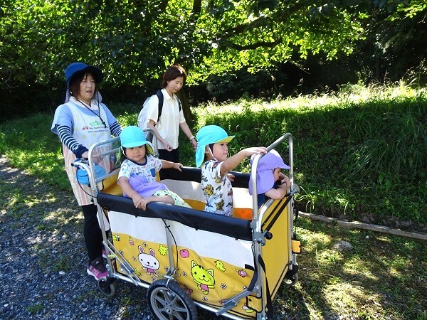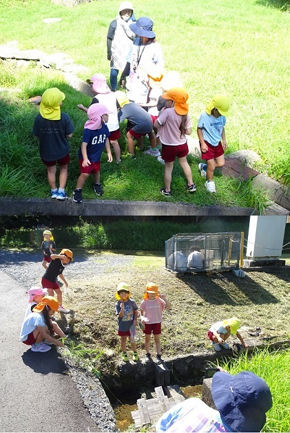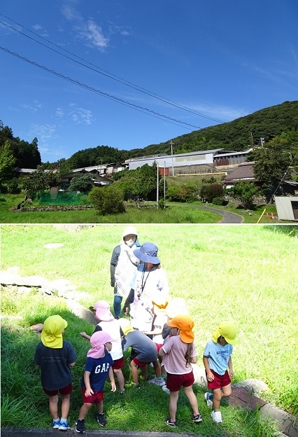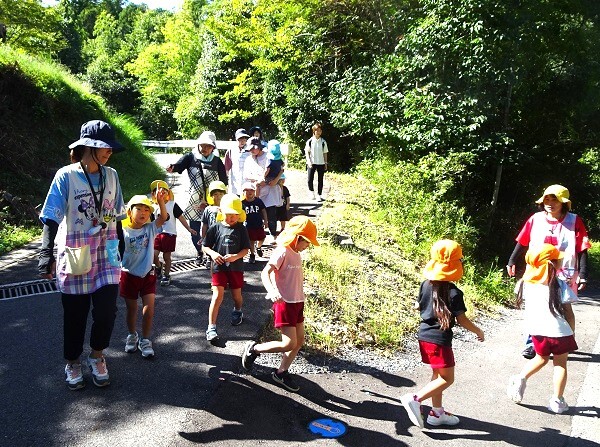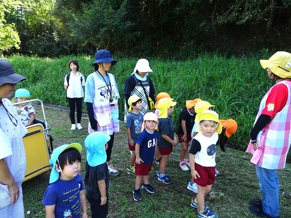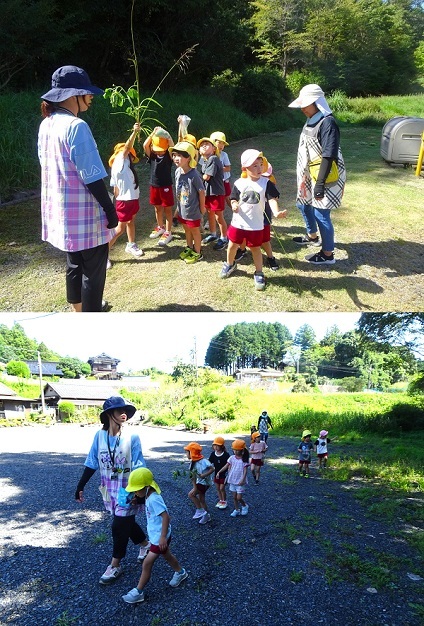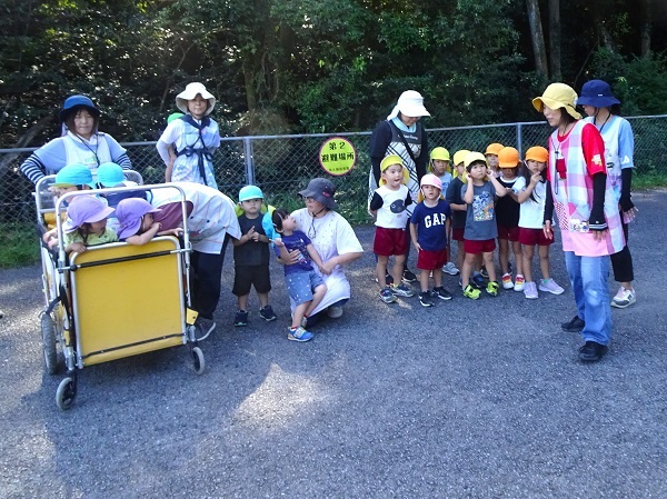子どもたちが外で遊んでいる時の地震対応避難訓練を行いました。第2避難所から第3避難所へ避難しました。避難後、天気が良いので遊びました。秋の自然を探しました。子どもたちの様子をご覧ください。