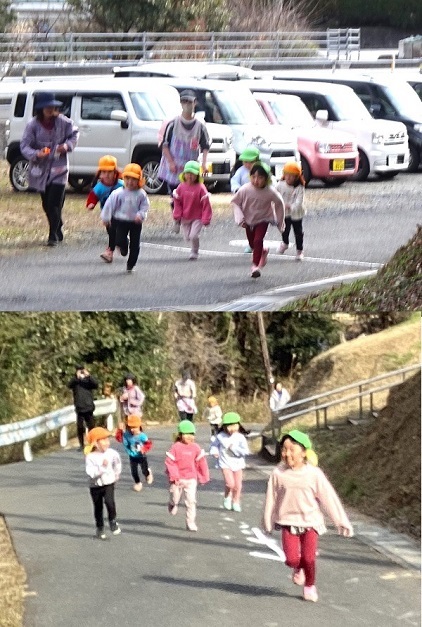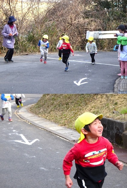 今年のマラソン大会は、月・雪・星組は、のぼり坂からスタートしました。キツイ坂をがんばってのぼってゴールをめざしました。フェンスからは走り終えた小さい子が応援していました。最後まで全員がんばって走りました。子どもたちの様子をご覧ください。