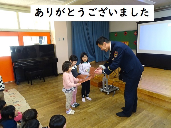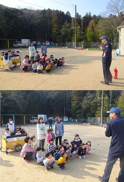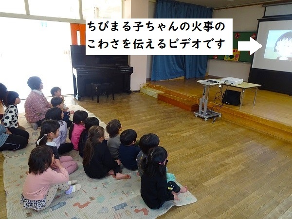 園内での出火を想定した避難訓練や消防署による防火指導がありました。避難の様子や保育士による消火の練習、防火ビデオ視聴等をご覧ください。