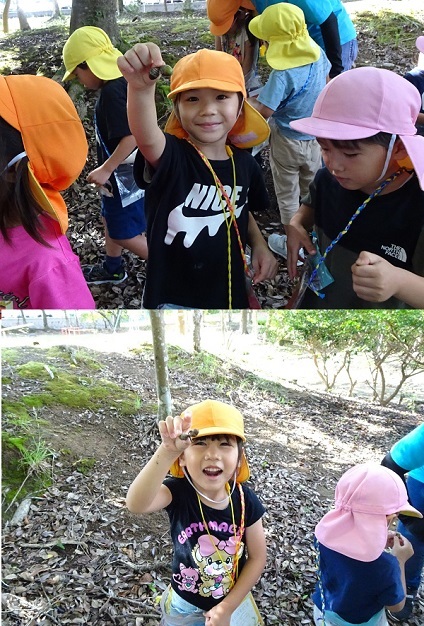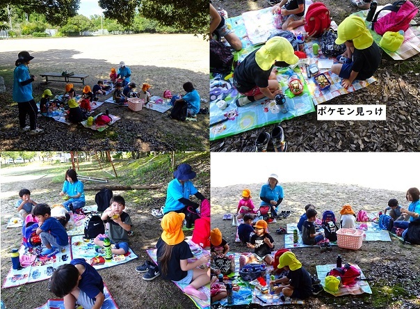 お家の人が作った「わくわく弁当」を持って公園へ遠足に行きました。公園には、たくさんのどんぐりや秋の実・種が落ちていました。公園で遊んだ後、お家の人がつくってくれた美味しい「わくわく弁当」を食べました。子どもたちの様子をご覧ください。