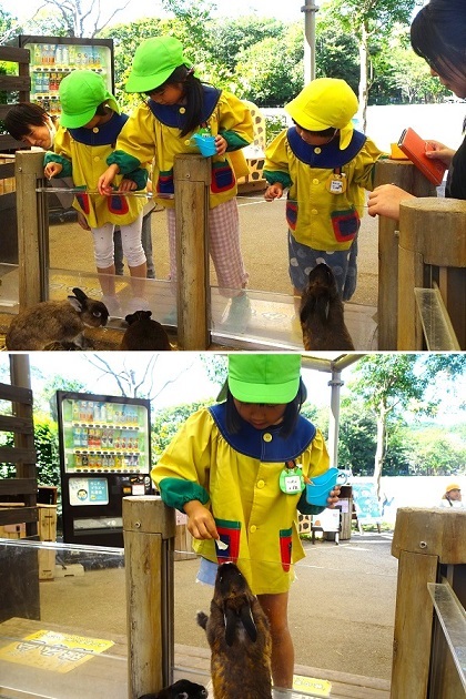 ウサギさんへエサやり