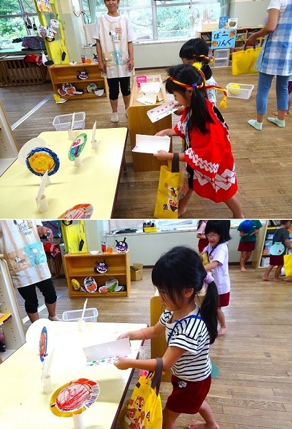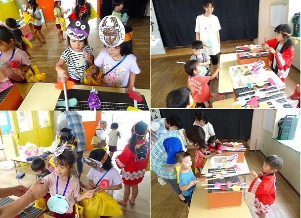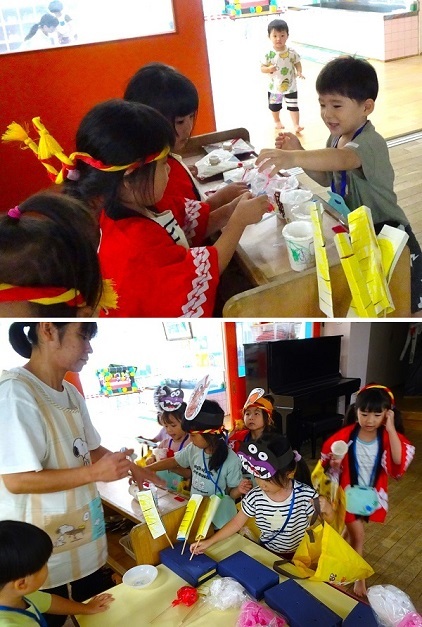 今年の夏まつりは、月・雪・星組が店員としてがんばりました。おまつりを楽しんでいる後半の様子をご覧ください。