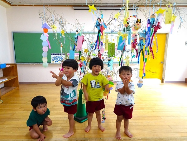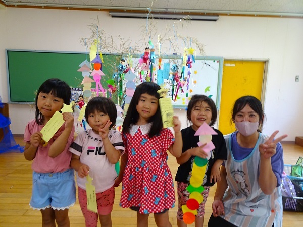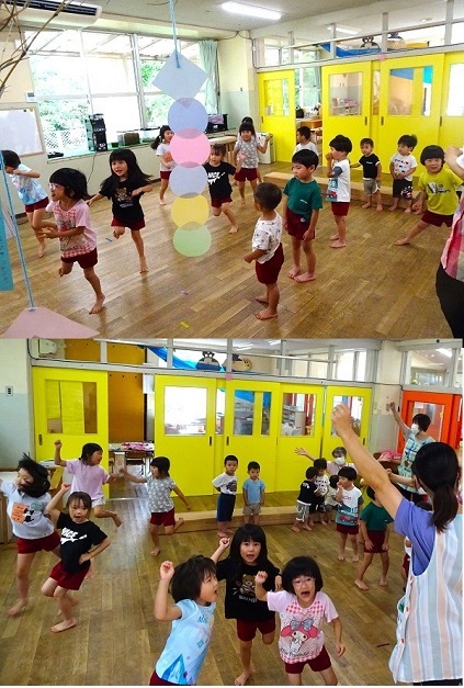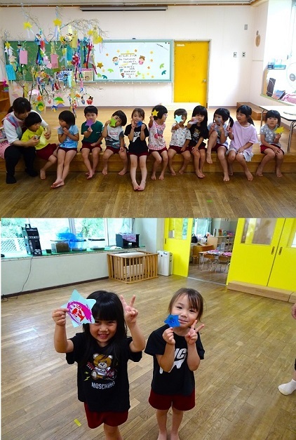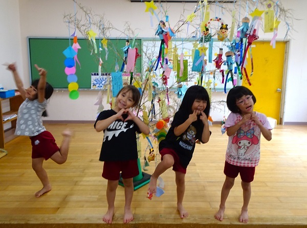 7月5日(金)たなばたまつりで歌やダンス、ゲームなどをしました。たなばた飾りの前ではクラス写真を撮りました。楽しんでいる子どもたちの様子をご覧ください。