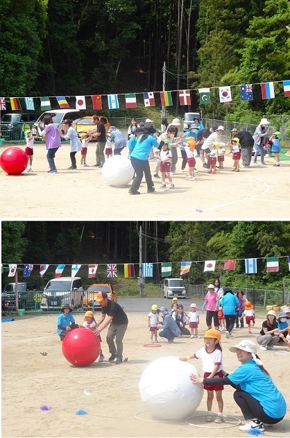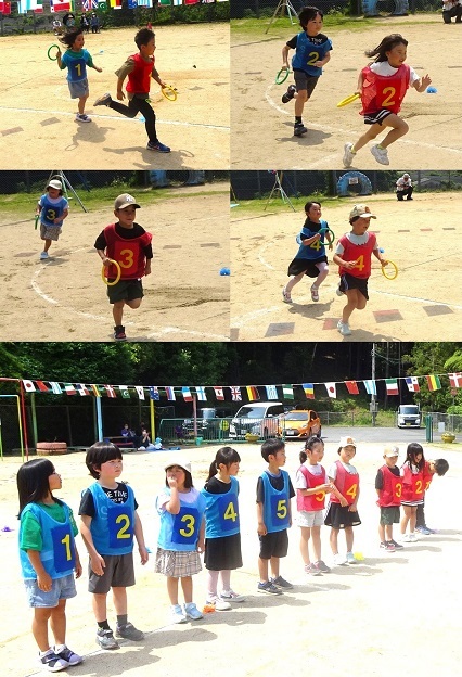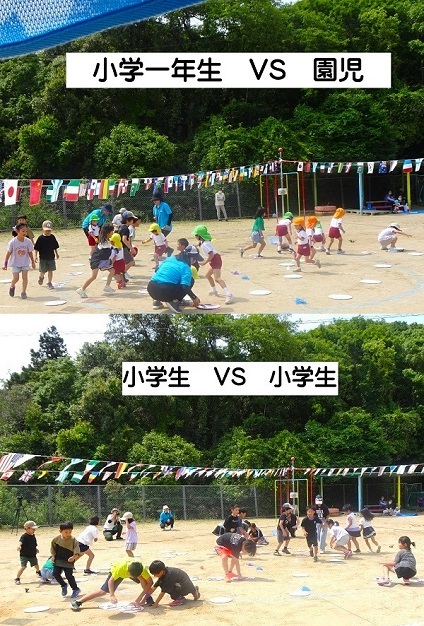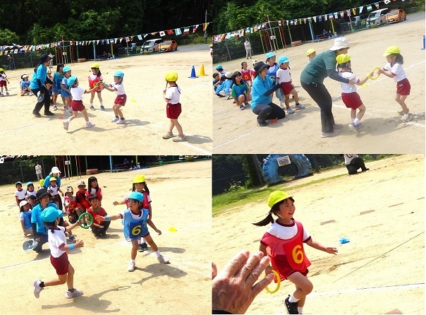 運動会後半の種目です。卒園した小学生も参加して運動会を盛り上げてくれました。楽しんでいる子どもたちの様子をご覧ください。