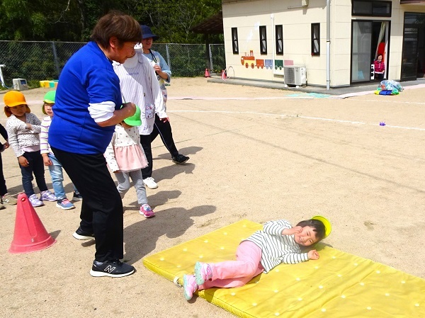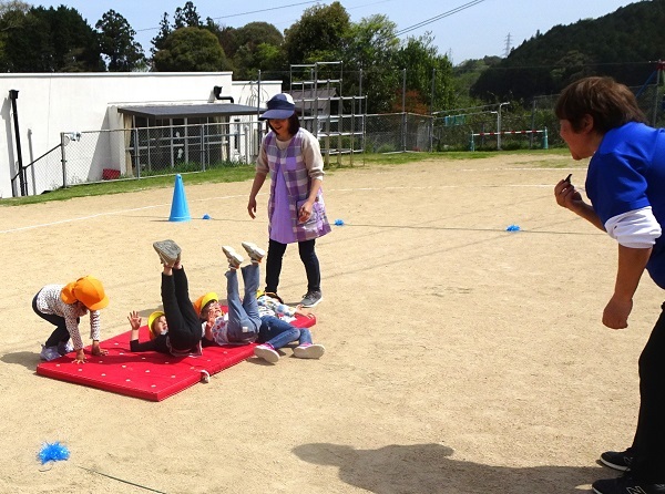 ガッツ体育教室がありました。6月1日(土)の運動会に向けての練習です。岡本先生から子どもたちが楽しみにしていたはじめてのパラバルーンの動きやマット運動も行われました。子どもたちの様子をご覧ください。