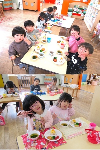 明後日の3月3日は、桃の節句です。保育園でもひな祭りを行いました。子どもたちが作ったひな人形やお雛様クイズ、給食の様子などをご覧ください。