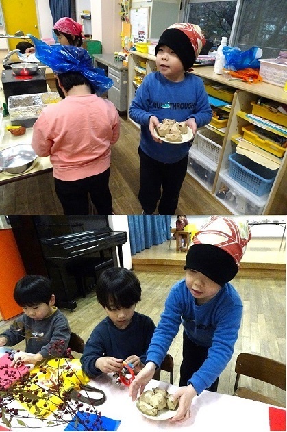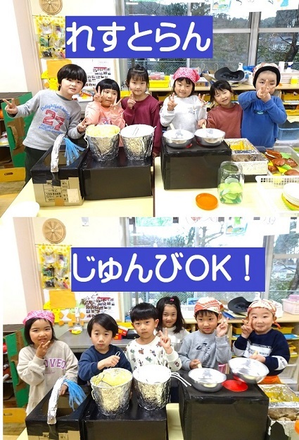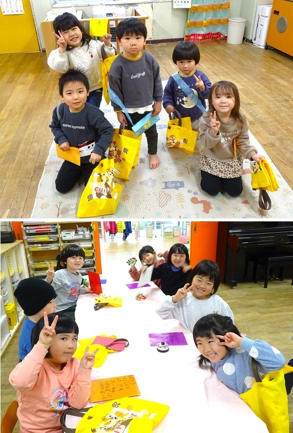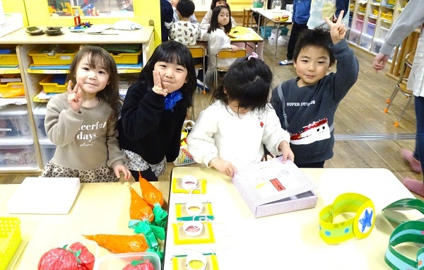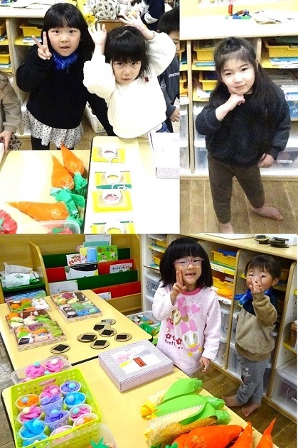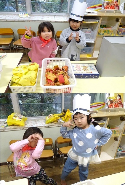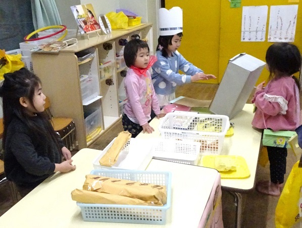 | 2月21日(水)子どもたちが楽しみにしていた「みなみおおみねでぱーと」(お店屋さんごっこ)が開店です。食べ物屋(レストラン・パン屋・おべんとうや)・おもちゃ屋・やおや、博物館の展示作品の準備、接客サービス等、この日に向けて子どもたちはがんばりました。楽しんでいる子どもたちの様子をご覧ください。 | ||
