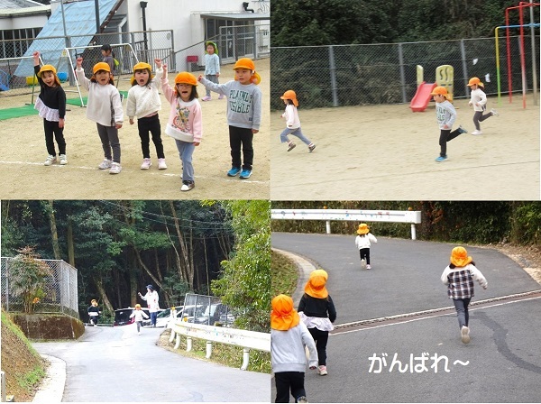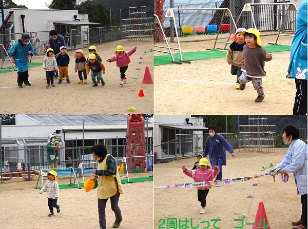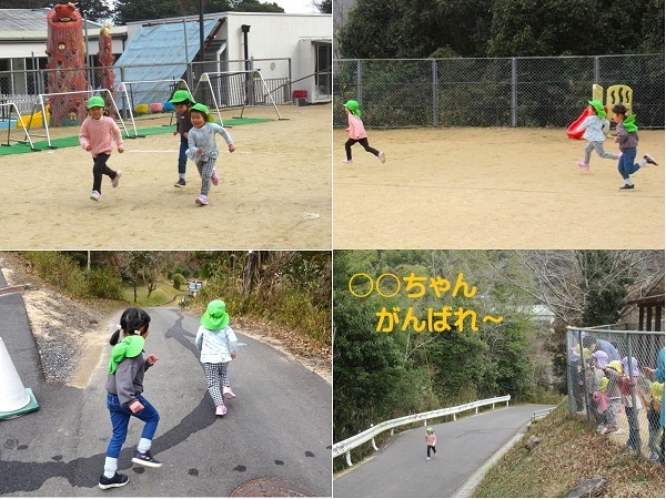 2月14日(水)マラソン大会が行なわれました。月・雪・星組は、坂コース、花・つぼみ組は園庭を走りました。がんばって走ったり友達を応援したりする様子をご覧ください。