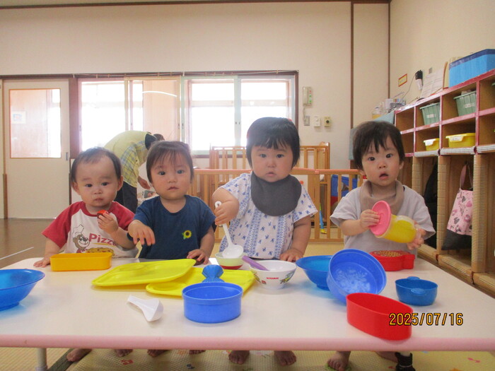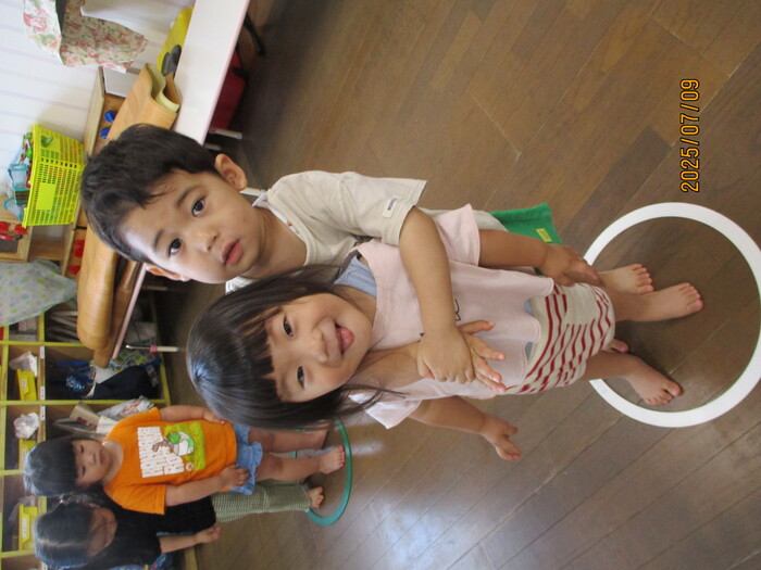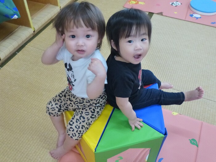 今年も暑い日が続きましたが、そんな中でもひよこ組さんは元気いっぱい🎉お友だちにも少しずつ興味を持ち始め、頭を撫でたり顔を見合わせて微笑み合ったりする姿に毎日癒されます❣❣ | ||